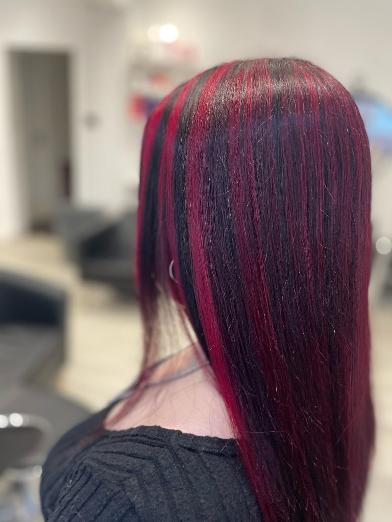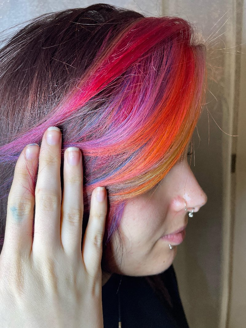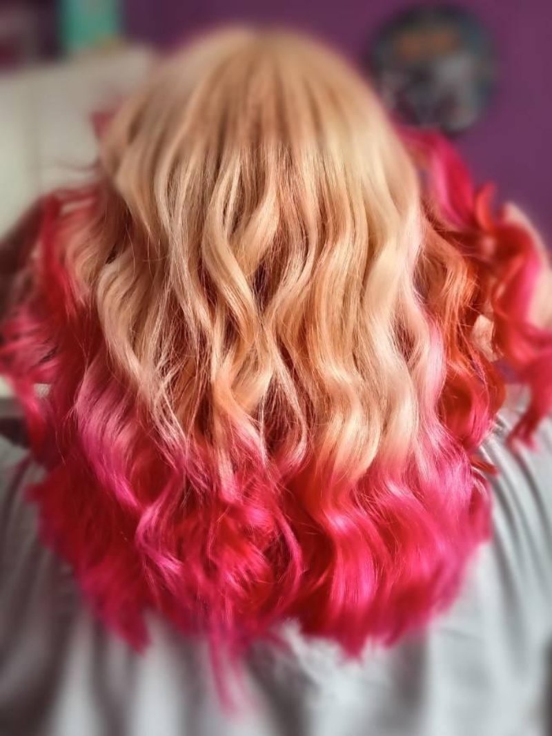 overall colourist. specialty is blondes, foils and baby lights. Also love to play around with alternative and quirky style hair colours 👻